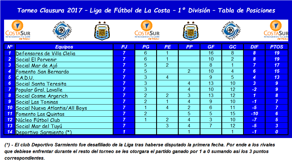 La fecha 8 del Torneo Clausura 2017 del Fútbol Grande del Partido de La Costa se jugara el día sábado casi en su totalidad debido a que el domingo se llevaran a cabo las elecciones legislativas en la provincia de Buenos Aires. Debido a esto la fecha se reprogramo para jugarse el dia sábado con la excepción del partido entre el club Social Nueva Atlantis/All Boys frente al Social Las Toninas reprogramado para el día miércoles siguiente.