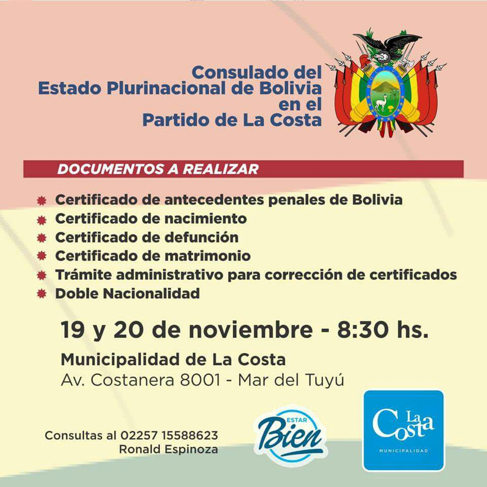 La Municipalidad de La Costa informa que este sábado 19 y domingo 20, a partir de las 8.30, habrá un nuevo operativo para facilitar el trámite de documentación a ciudadanos bolivianos residentes en el distrito.