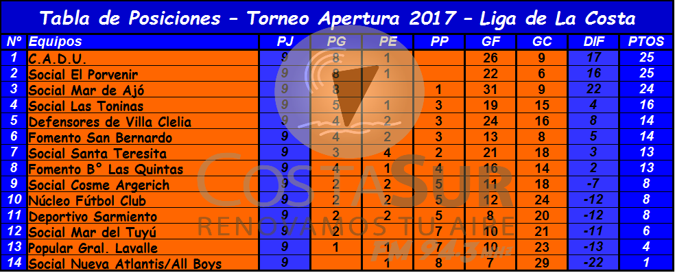 El plato fuerte de la jornada será el único en llevarse adelante el día sábado y será un partido trascendental ya que El Porvenir y el C.A.D.U. vienen con credenciales suficientes para avalar un buen espectáculo y dejar abierta la puerta a quien es favorito en esta ocasión. El local que esta apuntando a dos frentes (Torneo loca y Federal B), demostró que esta a la altura de llevar adelante dos competiciones con un gran plantel que lo ubica en lo mas alto del apertura y que en partidos oficiales por campeonato no pierde hace mas de un año (27 partidos, 25 ganados y 2 empatados). El C.A.D.U. de Santa Teresita sabe que si quiere volver a los primeros planos dentro del futbol local y ubicarlo nuevamente en el podio de campeón esta es una gran oportunidad sabiendo que cuenta con todas las armas para jugarle de igual a igual al bicampeón de La Costa.
