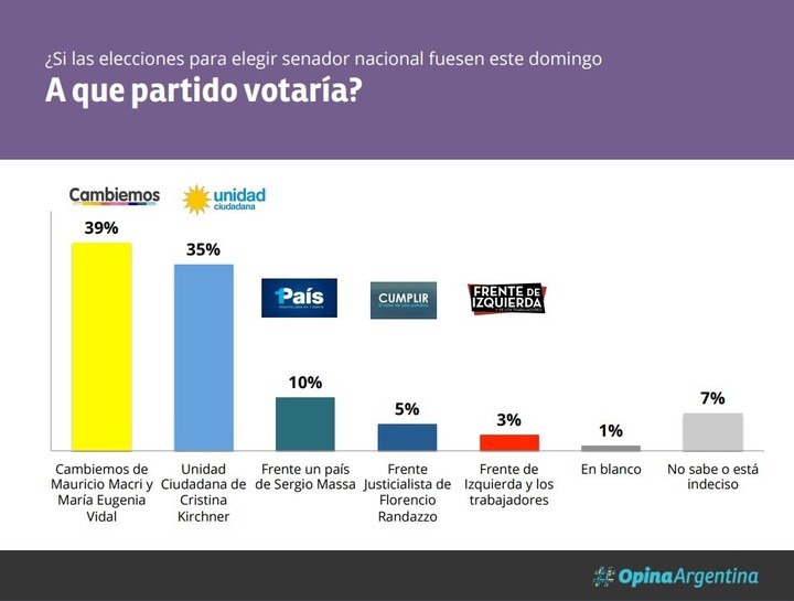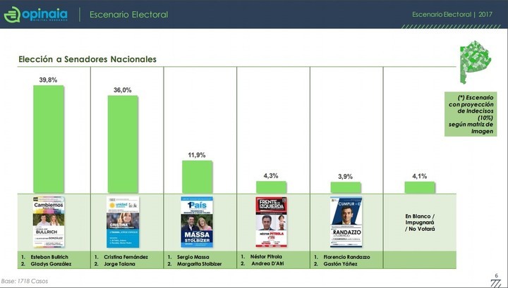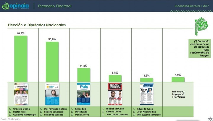 Plantearon dos escenario: para senadores y para diputados. En ambos, con proyección de indecisos, figura arriba la boleta de Cambiemos.