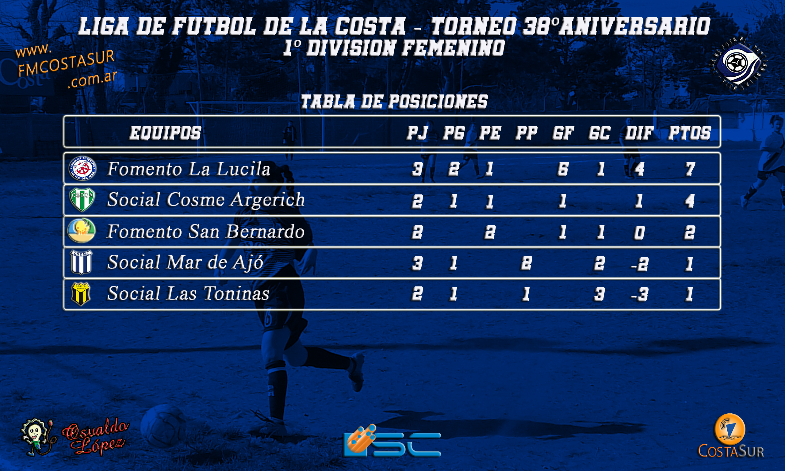 Por su parte, en el otro encuentro de la jornada »Las Gurisas» de Fomento San Bernardo recibirán a »Las Leonas» de Las Toninas en un partido en el que a las locales solo les sirve la victoria y esperar a que La Lucila no gane para poder seguir teniendo alguna mínima chance de seguir luchando por el campeonato.