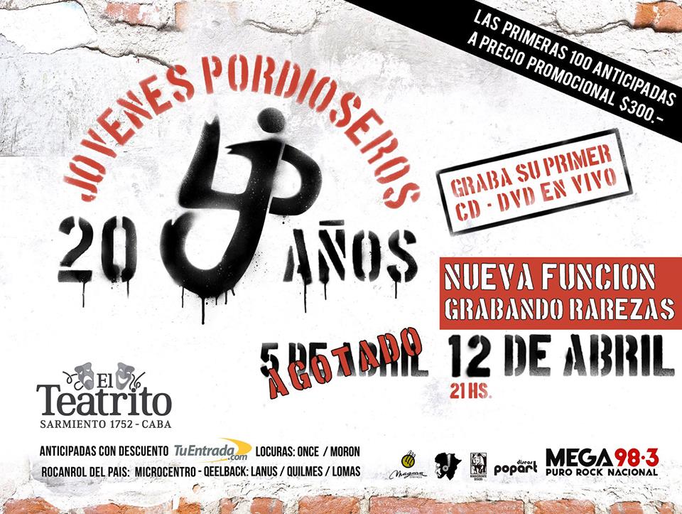 Jóvenes Pordioseros anunció la grabación de su primer CD-DVD en vivo para el próximo 5 de Abril. Cobertura especial