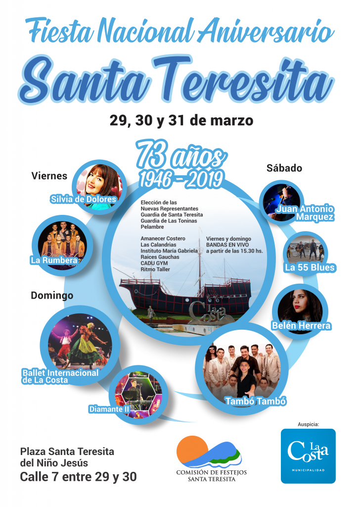 Esta celebración, que tiene el apoyo de la Municipalidad de La Costa, estará acompañada por una feria gastronómica y artesanal más la Feria Pulpo. Santa Teresita cumplió 73 años de su fundación el pasado domingo 3 de marzo.