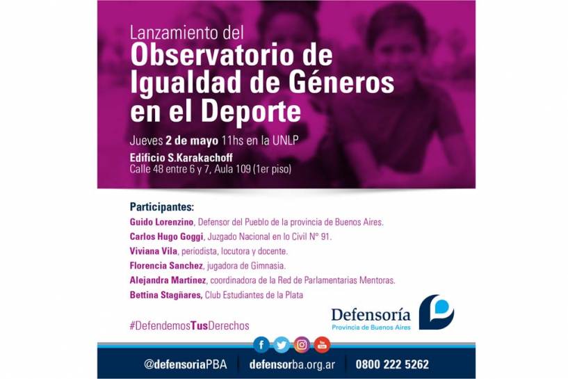 La Defensoría del Pueblo bonaerense lanzó este jueves el Observatorio de Igualdad de Géneros en el Deporte, una herramienta con la que el organismo busca garantizar el acceso real a la práctica a las distintas disciplinas sin discriminación de ningún tipo.